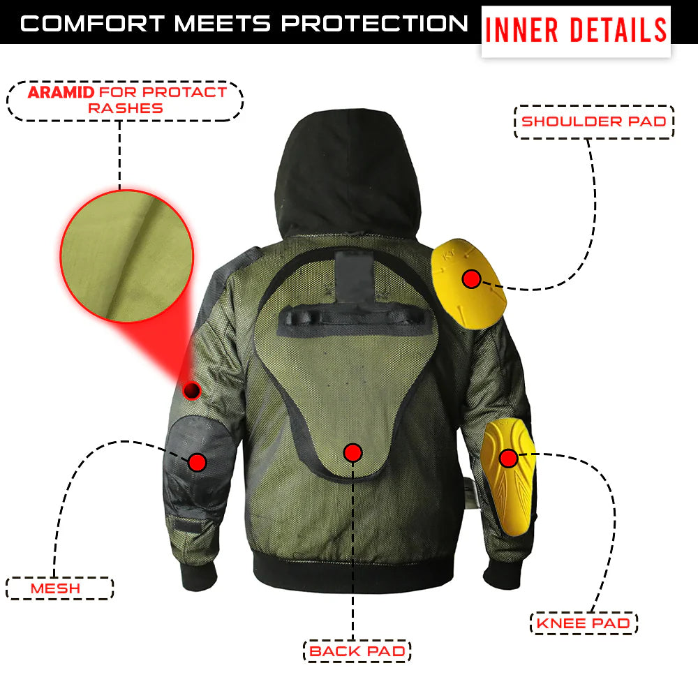 Ride with confidence and style in the CE Certified Protectors Hoodies Motorcycle Riding Aramid Lined Hoodie. Designed for riders who demand both protection and comfort, this hoodie is packed with essential safety features while maintaining a sleek, casual look. The hoodie is fully lined with Aramid fibers, offering superior abrasion resistance in case of a fall, while the removable CE-approved armor at the shoulders, elbows, and back provides high-impact protection where you need it most.